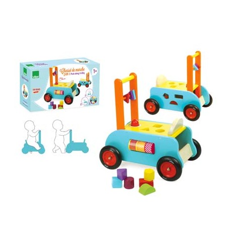Découvrez le chariot de marche de Vilac, un chariot en bois peint, avec différentes formes, idéal pour accompagner l'enfant de l'apprentissage de la marche !